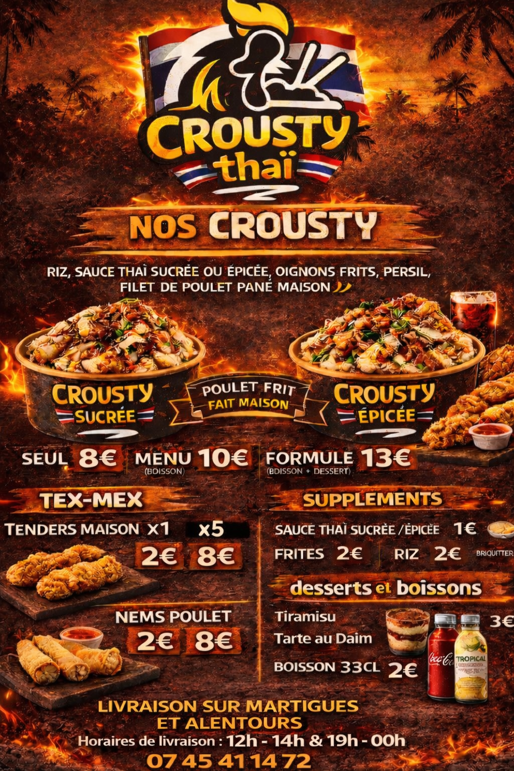 "Crousty Thaï est une véritable découverte ! Les saveurs sont authentiques et le service est impeccable. Je recommande vivement le Crousty sucrée , un délice !"
